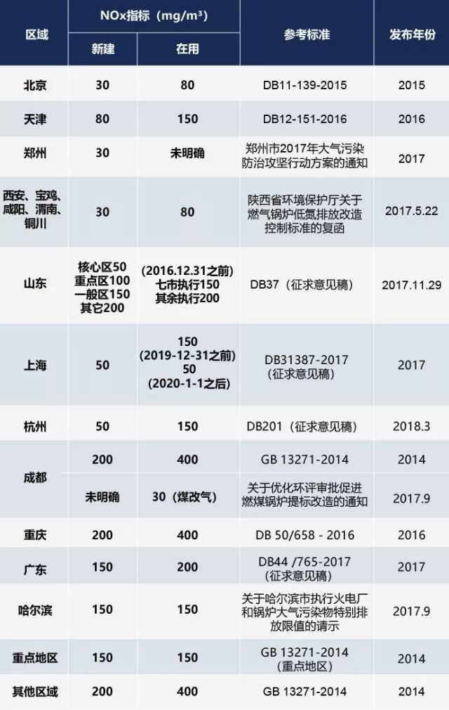 各地燃?xì)忮仩t氮氧化物排放量標(biāo)準(zhǔn)