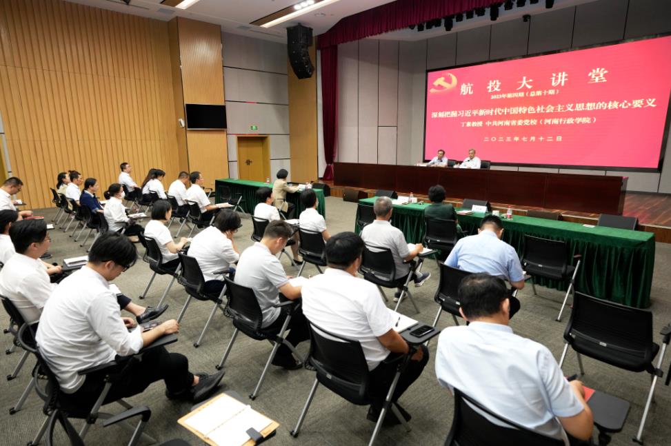 為深入推進(jìn)學(xué)習(xí)貫徹習(xí)近平新時代中國特色社會主義思想主題教育,7月12日下午,河南航投集團(tuán)黨委召開理論學(xué)習(xí)中心組集體學(xué)習(xí)(擴(kuò)大)報告會,邀請中共河南省委黨校(河南行政學(xué)院)教授丁素作報告。