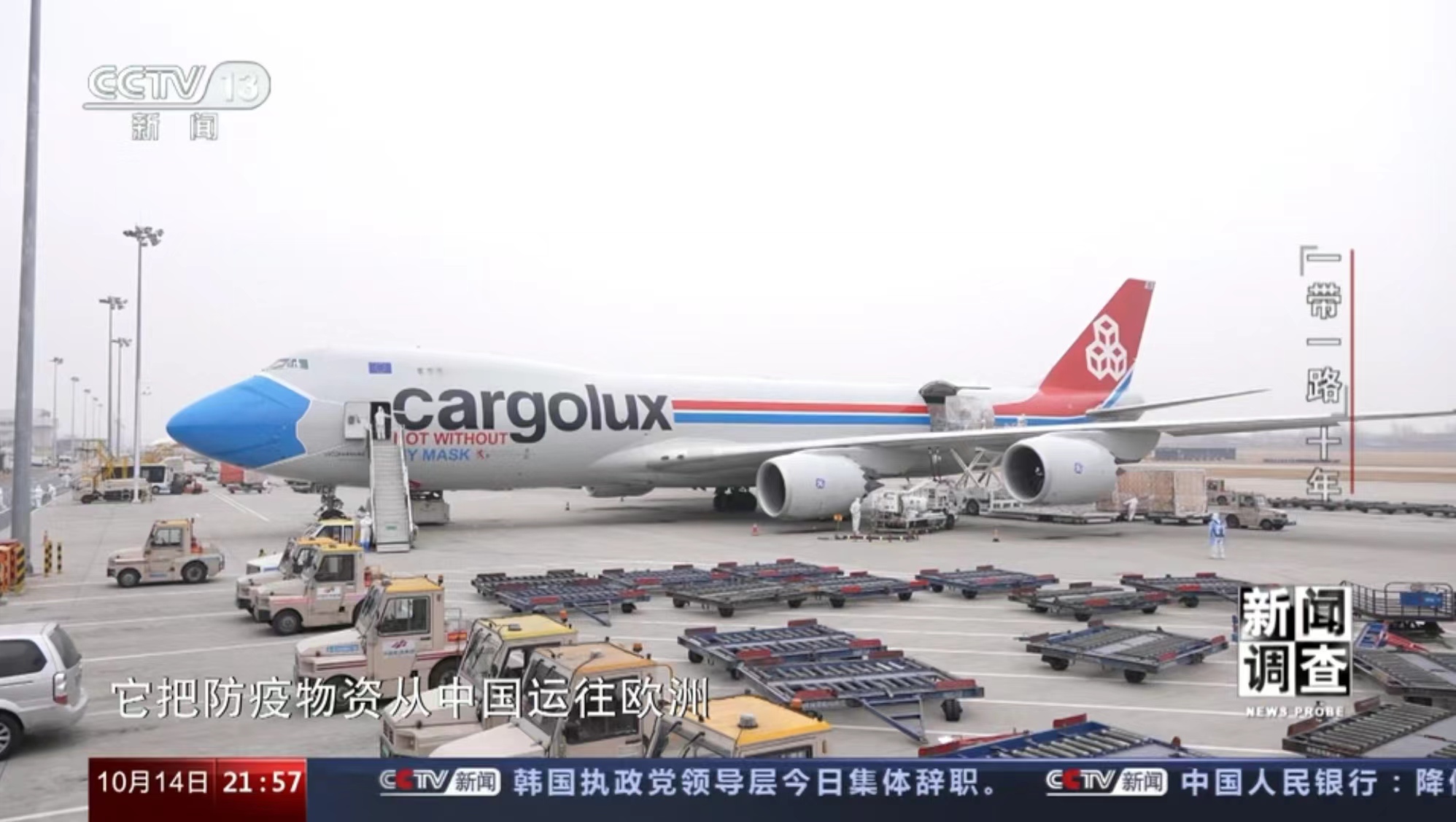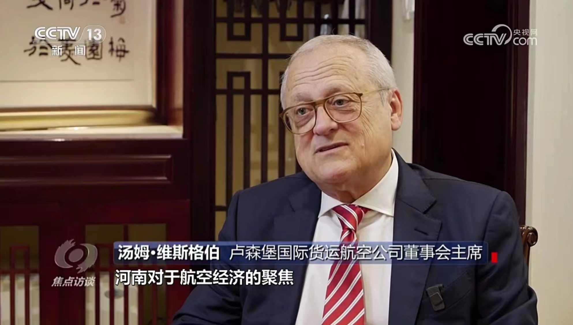 隨后,央視《新聞?wù){(diào)查》于10月14日播出“一帶一路十年 雙向奔赴 絲路同行”。報(bào)道再次把鏡頭給到河南,同樣選用了鄭盧“空中絲綢之路”案例。理查德·福森在節(jié)目中對(duì)雙方的合作成績(jī)給予肯定,他介紹說(shuō),通過(guò)這條鄭州到盧森堡的航線,盧森堡貨航能夠輻射整個(gè)歐洲,可以把貨物送到歐洲的125個(gè)站點(diǎn);同時(shí)也可以從新鄭國(guó)際機(jī)場(chǎng)飛往美國(guó)芝加哥和其他的分撥中心,從那里通過(guò)貨車陸運(yùn)至少可以去往美國(guó)的200多個(gè)站點(diǎn)。而湯姆·維斯格伯認(rèn)為,如果沒(méi)有河南,盧森堡貨航很難為客戶提供完美的方案。報(bào)道回顧了豫盧攜手抗疫、共同推動(dòng)可持續(xù)航空燃料加注和文化融通等事例,并認(rèn)為,從2013年河南航投與盧森堡貨航合作以來(lái),雙方攜手同行,帶來(lái)的不僅僅是利潤(rùn),還有對(duì)彼此堅(jiān)定的信任。