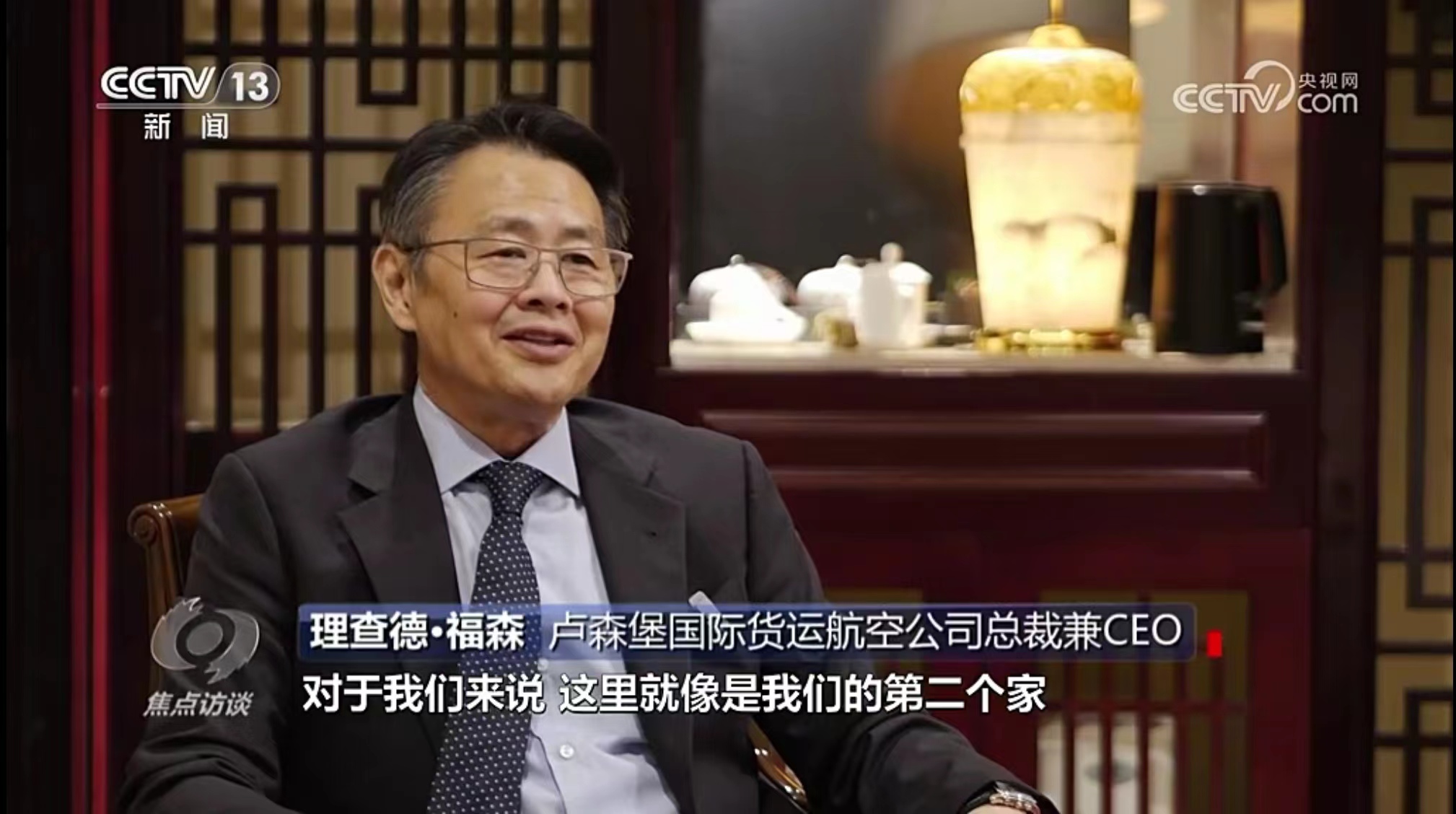 10月11日,央視《焦點(diǎn)訪談》播發(fā)系列報(bào)道“絲路同行”第一集——雙向奔赴的繁榮之路。報(bào)道中說(shuō),“一帶一路”倡議的提出,讓河南明確了突破區(qū)位限制、向藍(lán)天要效益的開(kāi)放思路。通過(guò)采訪河南航投集團(tuán)黨委書(shū)記、董事長(zhǎng)張明超和盧森堡貨航董事會(huì)主席湯姆·維斯格伯、總裁兼CEO理查德·福森,報(bào)道回顧了鄭盧“空中絲綢之路”十年探索實(shí)踐和豫盧之間的友好情誼。節(jié)目評(píng)論道:“(河南航投與盧森堡貨航)之間早已超越了生意伙伴這一簡(jiǎn)單的關(guān)系,多年的合作讓鄭州與盧森堡兩個(gè)航空樞紐之間的互聯(lián)互通真正實(shí)現(xiàn)了彼此雙方互利共贏和美美與共。這一切都在詮釋著‘一帶一路’倡議的核心要義。”