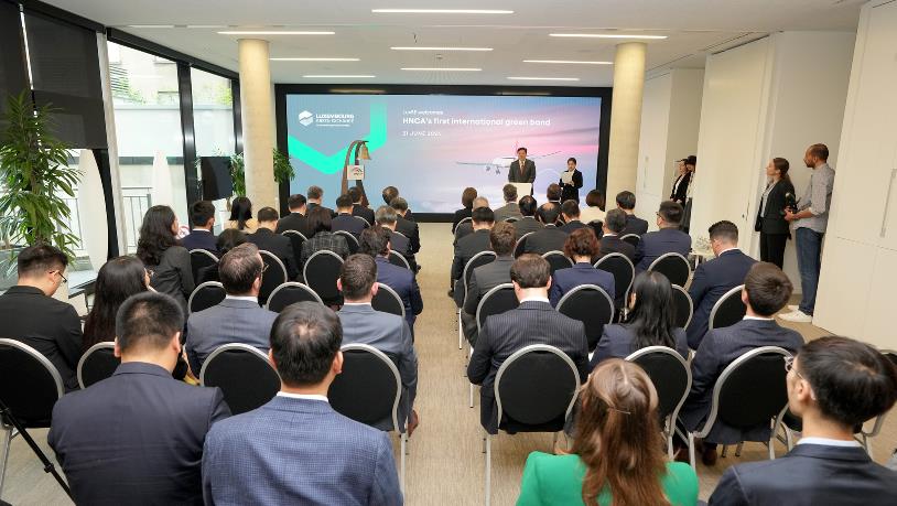 當?shù)貢r間6月21日上午,中豫航空集團以河南航投為主體發(fā)行的3年期人民幣境外債券上市儀式在盧森堡證券交易所舉行。這是中國企業(yè)在歐洲發(fā)行的首只支持可持續(xù)航空燃料(SAF)的綠色債券,也是河南企業(yè)發(fā)行的首只離岸人民幣綠色債券,鄭盧“空中絲路”資金融通實現(xiàn)新突破。