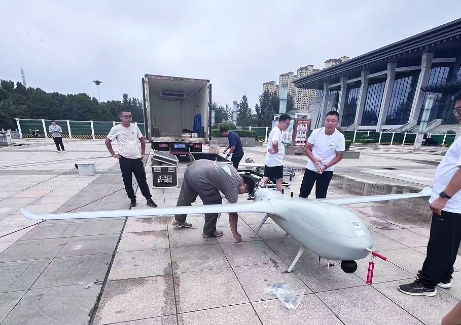 7月17日,航投通航公司調集13名無人機飛行技術人員,攜帶應急監(jiān)測無人機、中型垂起無人機、通訊保障車等專業(yè)設備抵達南陽,開展實時全面的監(jiān)測、預警。18日上午10時,技術人員攜帶中型垂起無人機在社旗縣進行備勤工作;下午3點,技術團隊趕赴唐河縣進行河道防洪情況監(jiān)測,為當?shù)貞辈块T防洪除澇工作提供精確災情信息。