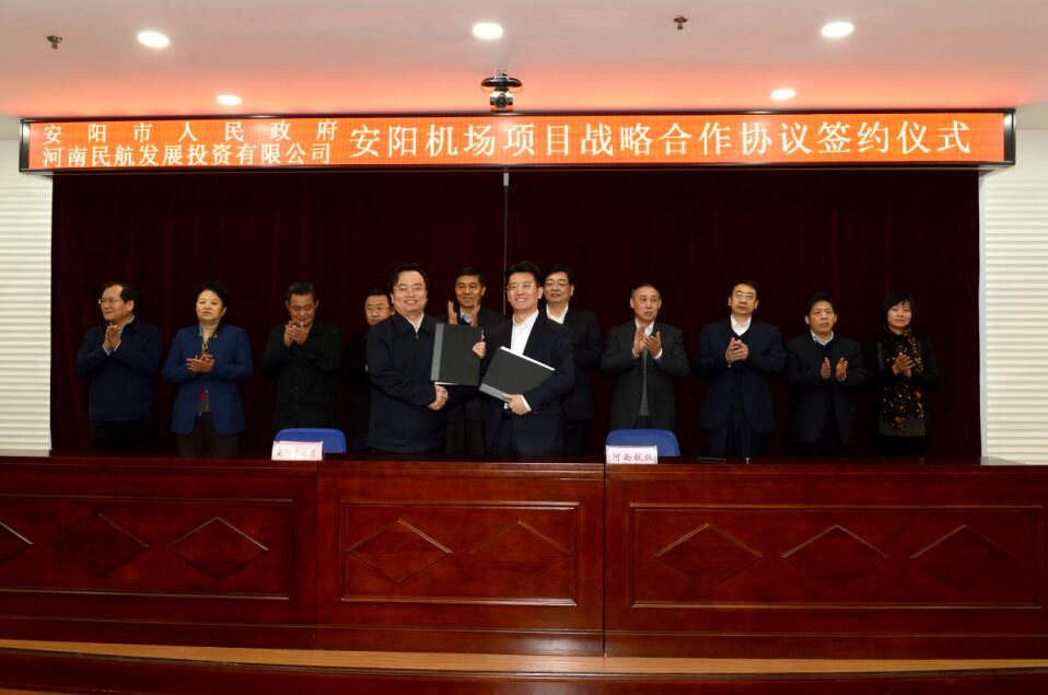 12月29日,河南航投與安陽市政府在安陽簽署《戰略合作協議》,在新年前就安陽豫東北機場的開工奠基舉行簡短而隆重的儀式。