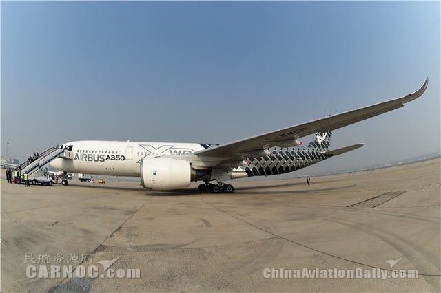 11月2日一架身披碳纖維特殊涂裝的空客A350-900測(cè)試飛機(jī)飛抵北京首都國(guó)際機(jī)場(chǎng),并在11月3日進(jìn)行展示。A350是目前世界上最先進(jìn)的遠(yuǎn)程寬體飛機(jī)。北京是空客A350中國(guó)巡演活動(dòng)的第三站,之前這架生產(chǎn)序列號(hào)為MSN2的測(cè)試飛機(jī)已經(jīng)訪(fǎng)問(wèn)了珠海和海口,接下來(lái)它還將飛抵上海、廣州和成都進(jìn)行靜態(tài)和飛行展示。
