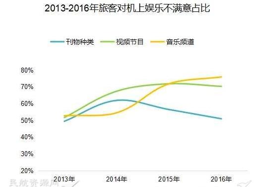 以上圖為例,音頻、視頻、旅客的滿意度一直在下降,不滿意度一直在上升?!熬退銠C上娛樂項目更新得再快,做得再好,不可能滿足每一個旅客的個性化需求。但是只要打通了一個環節,把互聯網接上了,聊微信也好,聽QQ音樂也好,還是聽其他的音樂也好,那都是旅客自己的事情,旅客滿意度會得到最大程度的提升?!?